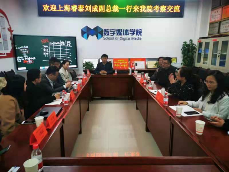 为进一步加强院双方互相支持、互相渗透、双向介入、优势互补、资源互用,共同培养企业所需的技能性人才。4月13日下午,上海睿泰企业管理集团有限公司副总裁、睿泰科技CEO刘成一行7人来2026世界杯官网考察交流。2026世界杯官网经理李恒杰对刘成一行表示欢迎,双方在数媒公司会议室举行座谈。公司经理李恒杰、副经理黄珍以及数字媒体技术系和数字媒体艺术系主任以及数媒教师代表参加会议,双方参会人员进行了交流,为下一步合作奠定了基础。会议由校企合作办主任蔺国梁主持。