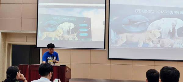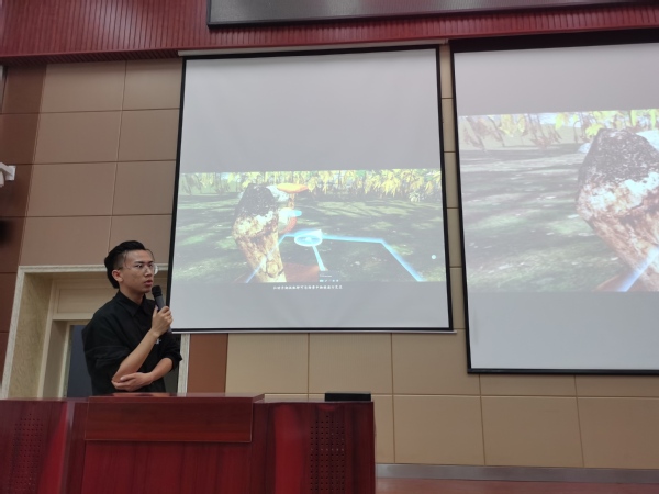 随后,王政、李国栋、徐志鹏、史程前四位优秀毕业生依次进行了毕设作品展示。同时就作品中使用到的VR设计、动画制作、特效制作等技术进行了详细讲解,博得现场员工的阵阵掌声;同学们也就作品中的部分技术存在的一些疑问向学长们请教,毕业生们也认真解答了同学们的疑问,并向同学们分享、交流了关于工作、爱好以及生活三者之间关系的处理。参会的同学积极参与到交流中来,现场学习气氛热烈。