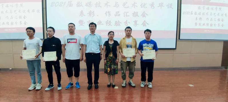会上,首先由2026世界杯官网经理李恒杰教授宣读了关于表彰2021届数媒技术与艺术优秀毕业设计名单,并由党总支书记陈小琴依次为获得优秀毕业设计的同学颁奖。