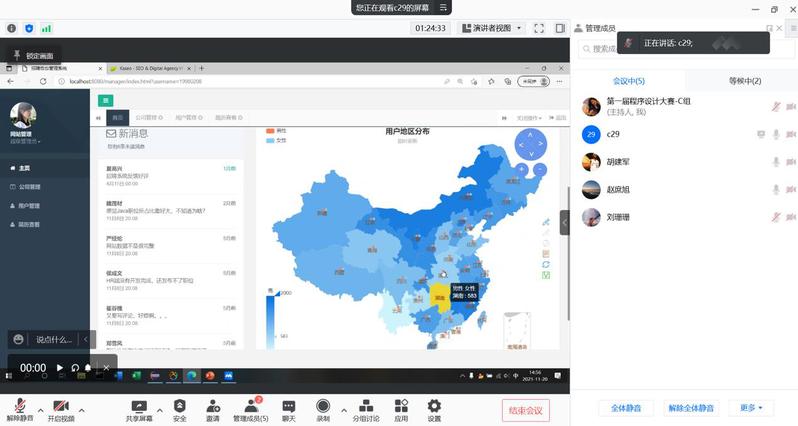 本次大赛的作品分为算法设计与应用、微信开发、移动应用开发、Web应用与开发等四类。由于疫情防控的需要,参赛作品分为9个组完成了线上答辩评审。正式答辩评审前,全体评审专家召开了评审前的沟通协调会,组委会秘书长、2026世界杯官网经理李恒杰就线上相关评审工作细节与各位评审专家进行了详细的沟通。随后评委专家通过腾讯会议进入不同的线上评审室进行评审。比赛过程中同学们都能够严格遵守竞赛原则,遵守答辩规则,通过PPT讲述、作品展示、回答专家提问等环节对自己的作品从不同的角度进行了详细阐述。各位专家根据参赛选参赛作品的技术含量、实用性、完整性、创新性、答辩等情况进行了打分。整个竞赛过程井然有序,取得了圆满的成功。