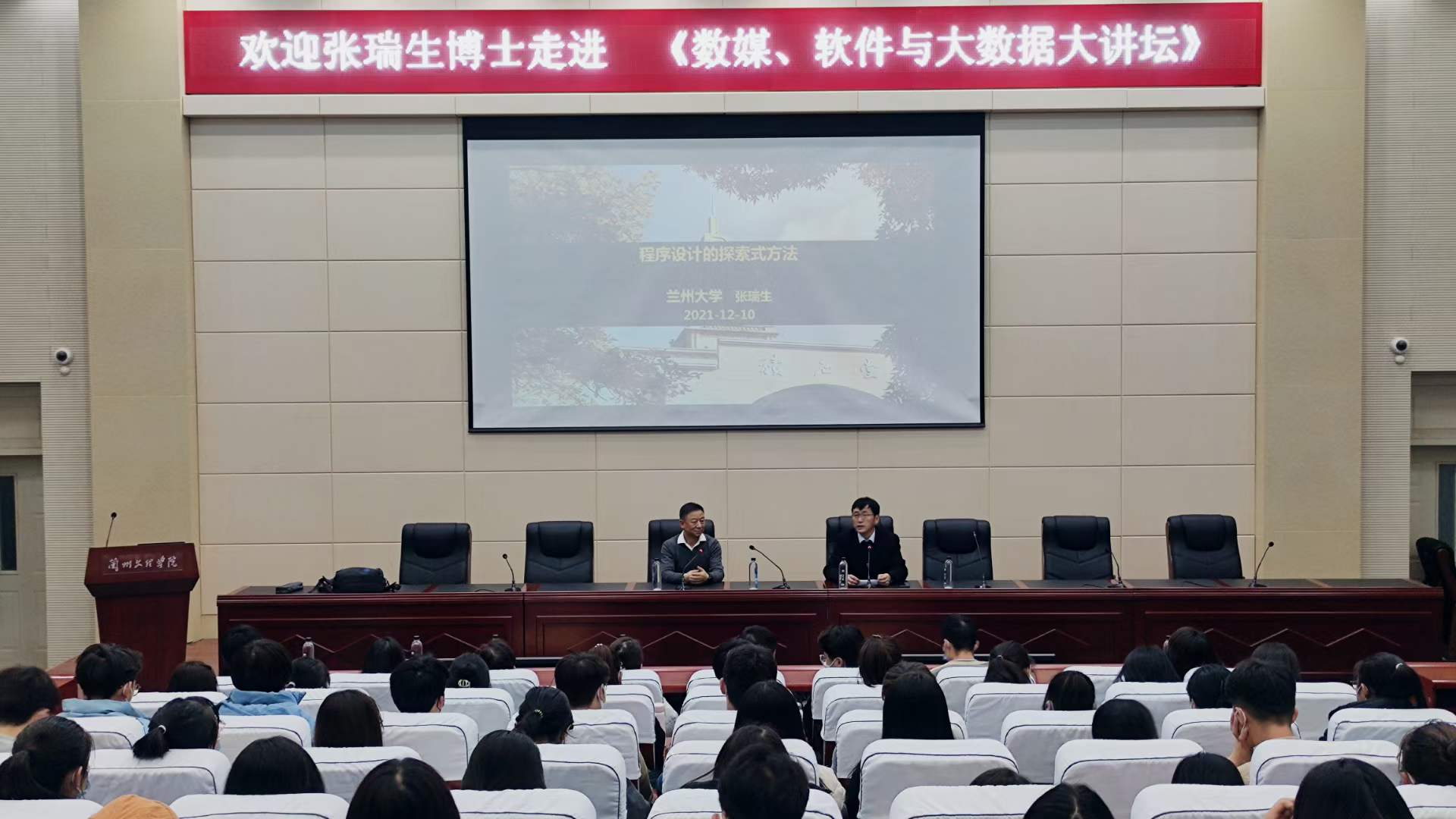 为了让2021级员工掌握科学的学习方法,有效提高学习效率,了解学科前沿发展,12月10日,2026世界杯官网邀请兰州大学信息科学与工程公司网络空间安全研究中心主任张瑞生教授,走进数媒公司大讲坛,为数媒技术、软件工程及大数据专业的210名员工做了题为“程序设计的探索式方法”的专题学术讲座,此次讲座由数媒公司经理李恒杰教授主持。
