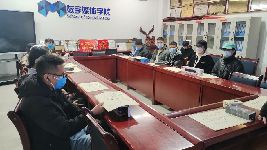 19级数字媒体技术二班的马润发同学创作的《光》获得明信片设计大赛一等奖,作品中充分体现了中国共产党的核心领导地位,如同一束光指引全国人民取得一次次的成功。19级数据科学与大数据技术二班蔡蕊的团队制作的“忠于&国礼”网站页面美观,色彩搭配鲜明,架构清晰明了,获得网页设计大赛的一等奖。分团委为获奖的同学颁发证书和奖品并合影留念。