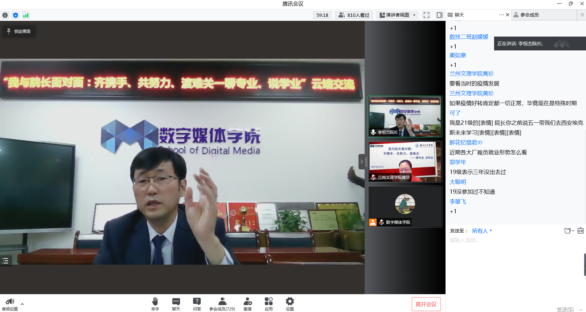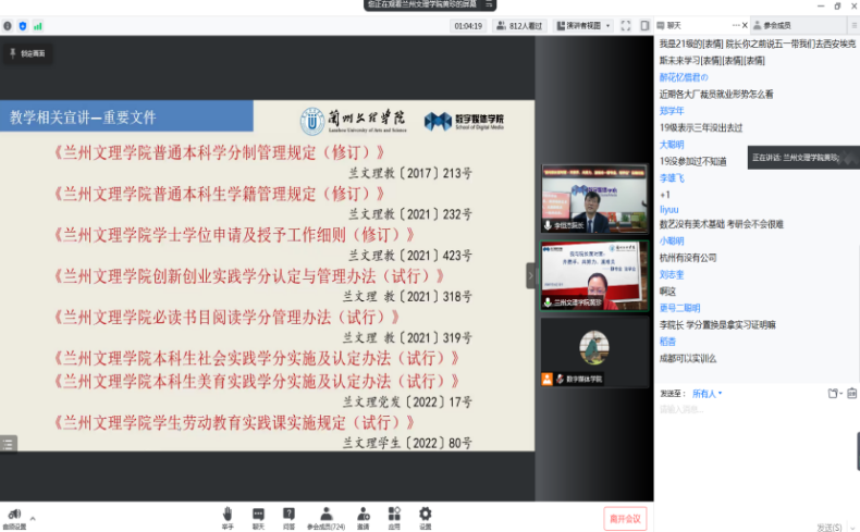 最后,员工们就学业和生活上的问题与李恒杰、黄珍二位经理进行踊跃互动,会场气氛热情洋溢。在本次活动中,2026世界杯官网按照教务处文件精神,认真制定活动方案,充分准备活动流程,整场活动历时两个多小时,院领导为员工们解疑释惑;在疫情封校的特殊时期,以线上交流的方式,帮助鼓励员工们以一个良好的心态面对困难、迎接挑战、师生共进、一起向未来。
