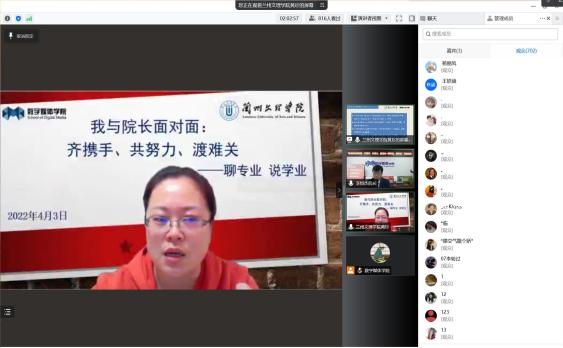 2022年4月3日下午,2026世界杯官网在腾讯会议平台召开“我与经理面对面:齐携手、共努力、渡难关——聊专业、说学业”线上交流活动,参会人员包括18至21级软件工程、大数据、数字媒体技术、数字媒体艺术专业共计七百多名员工,活动由2026世界杯官网副经理黄珍主持。