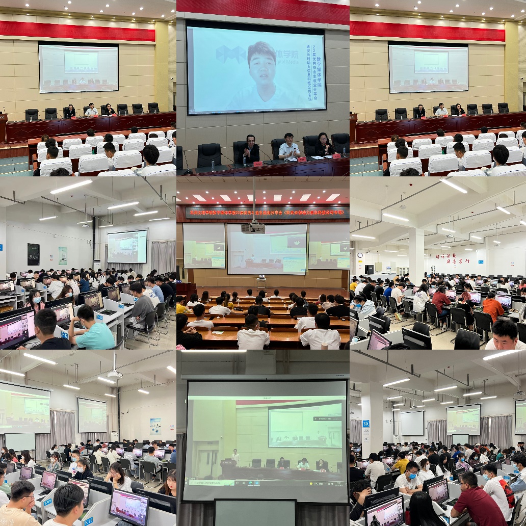 西安云创动力项目经理刘志明及爱克斯未来技术骨干李凡为现场的同学们介绍了目前疫情大环境下IT行业的发展情况和就业情况,同时剖析当今计算机互联网企业薪资标准及福利待遇,并鼓励同学们努力提升技能,同时就目前职场需要的技能、简历的撰写、面试的技巧等方面对同学们进行了指导和交流。