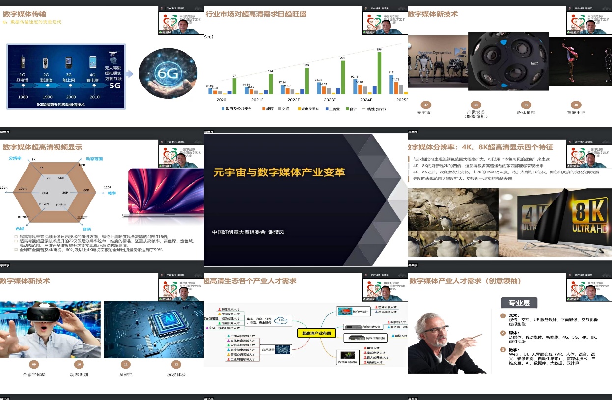 谢清风教授从产业的角度入手,就数字媒体的载体呈现、数字媒体的新技术及发展方向、数字媒体创意设计和创新、数字媒体产业需求和元宇宙生态带来的产业变迁和就业创新等多方面的内容阐述了数字媒体的产业业态发展,拓展了同学们的眼界,对行业、产业的发展有了新的认知和了解。报告结束后,谢清风教授与同学们进行连线互动,对同学们提出的问题,进行了耐心细致的解答,现场气氛热烈。