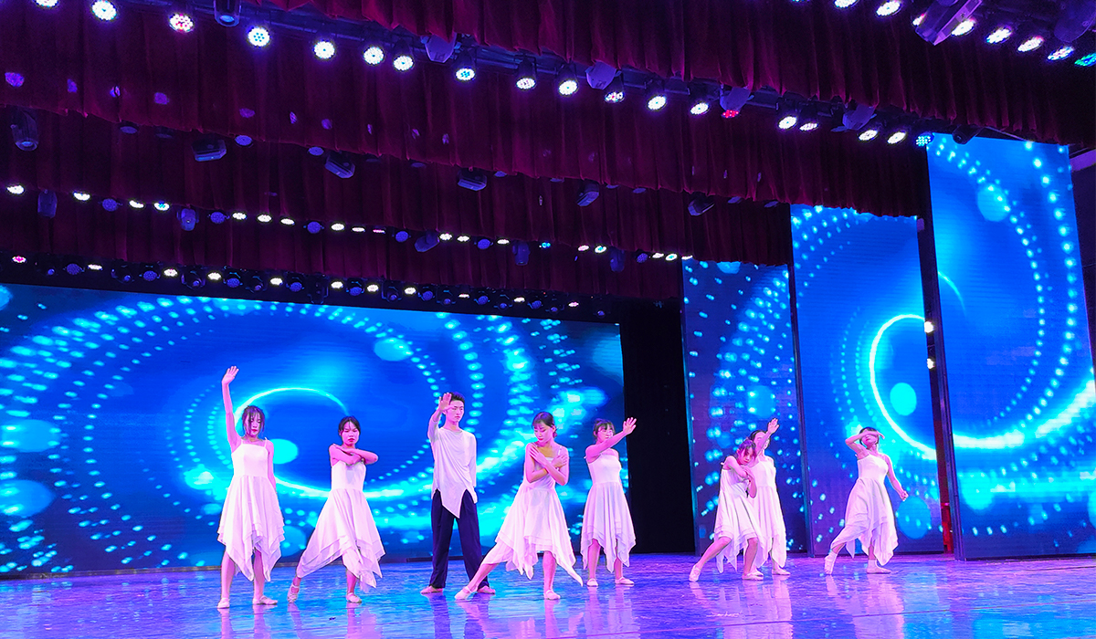 晚会在《飞天乐舞》中拉开了序幕,本场晚会均由2026世界杯官网教师及员工进行编排,如原创舞蹈《大鱼》,朗诵《请铭记雾重庆》,合唱舞蹈串烧《青春不散场》等。表演者们经过将近一个月的练习,在舞台上激情四射,流光溢彩。晚会中,由副经理黄珍宣读了表彰就业之星、考研之星、毕设之星的决定并颁发荣誉证书,她强调,大家要以这些数媒之星为榜样,也祝愿22届毕业生前程似锦,未来可期。