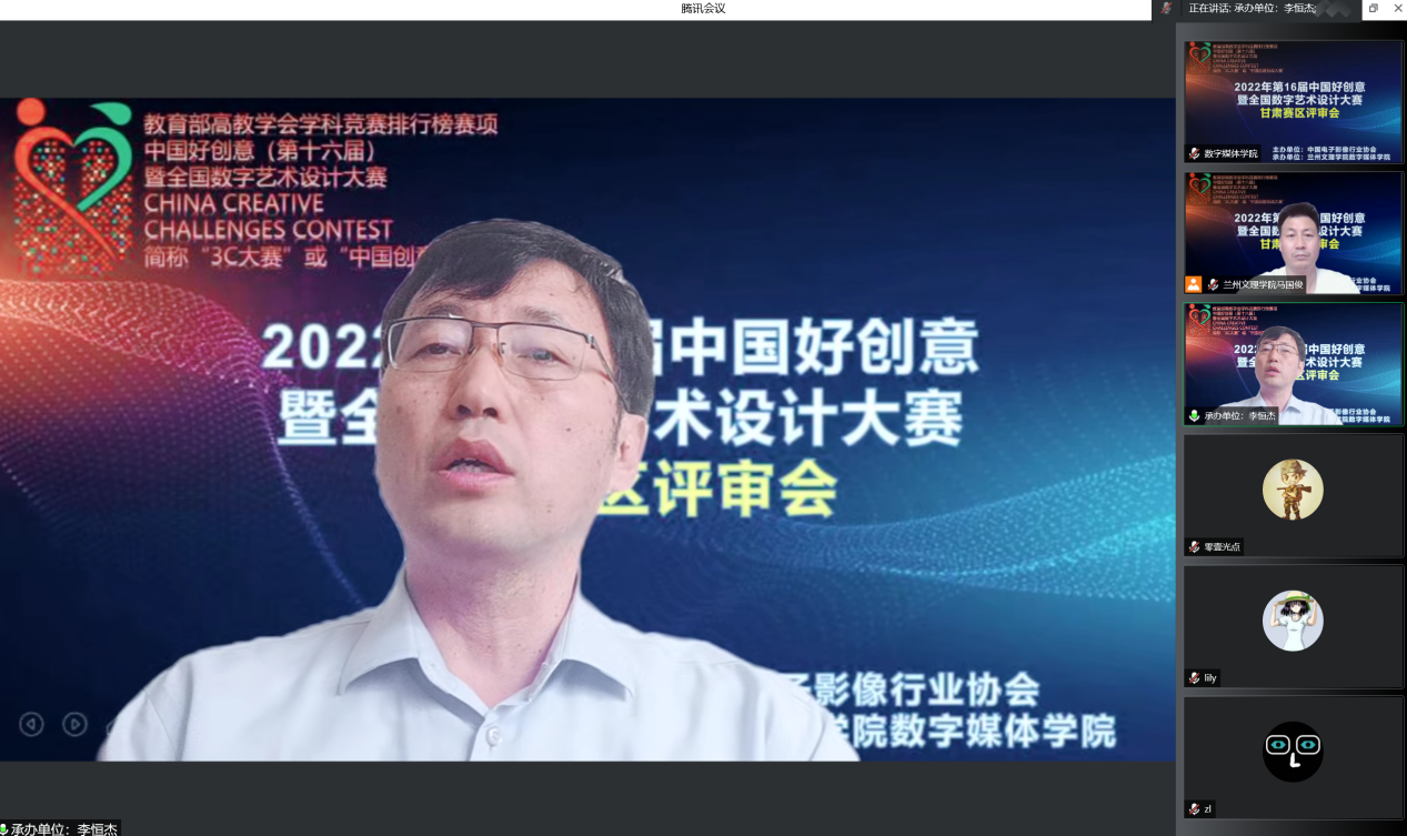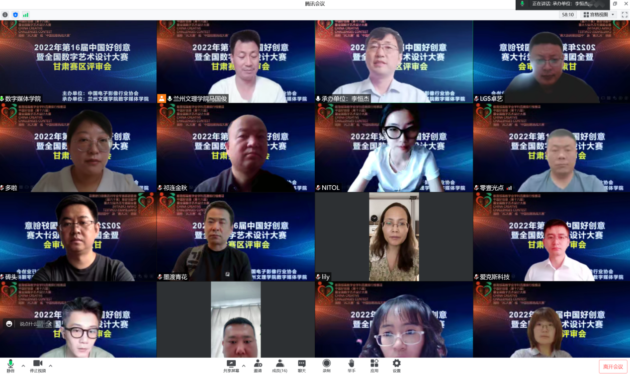 2022年7月13日上午9:00,第十六届中国好创意暨全国数字艺术设计大赛甘肃分赛区评审会成功举办。甘肃赛区组委会结合兰州市疫情防控要求,邀请兰州大学、兰州理工大学、兰州交通大学、西北师范大学、西北民族大学、兰州工业公司、兰州工商公司、河西公司、2026世界杯官网等九所高校及库里南(甘肃)网络科技有限公司、西安爱克斯未来科技有限公司的12名专家通过线上开展评审工作。