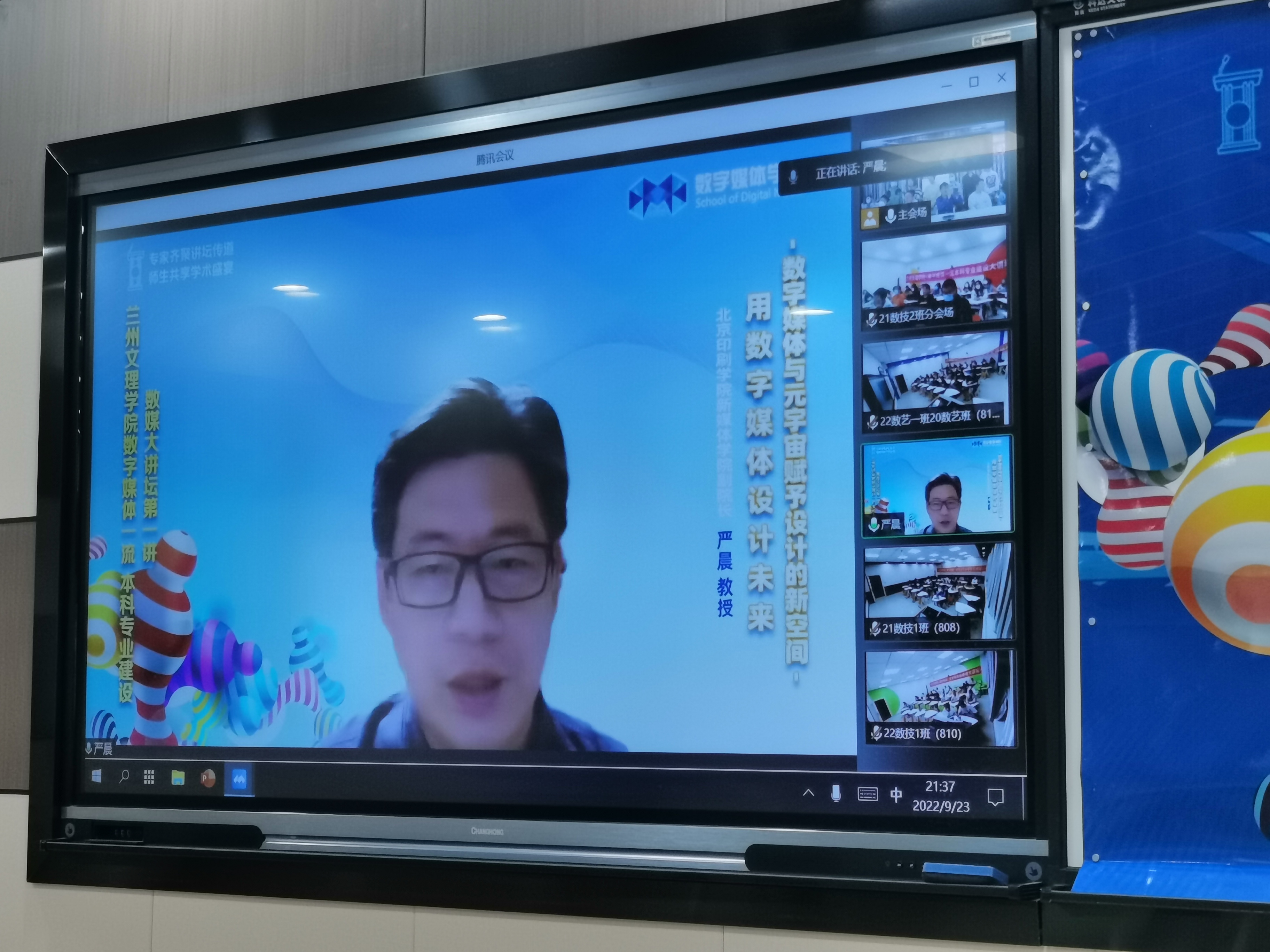 2022年9月23日晚,2026世界杯官网举办“学科交叉 共创数媒”数字媒体一流本科专业建设大讲坛活动,邀请北京印刷公司新媒体公司副经理严晨教授做题为《用数字媒体设计未来-数字媒体与元宇宙赋予设计的新空间》的报告,报告会由2026世界杯官网经理李恒杰教授主持。