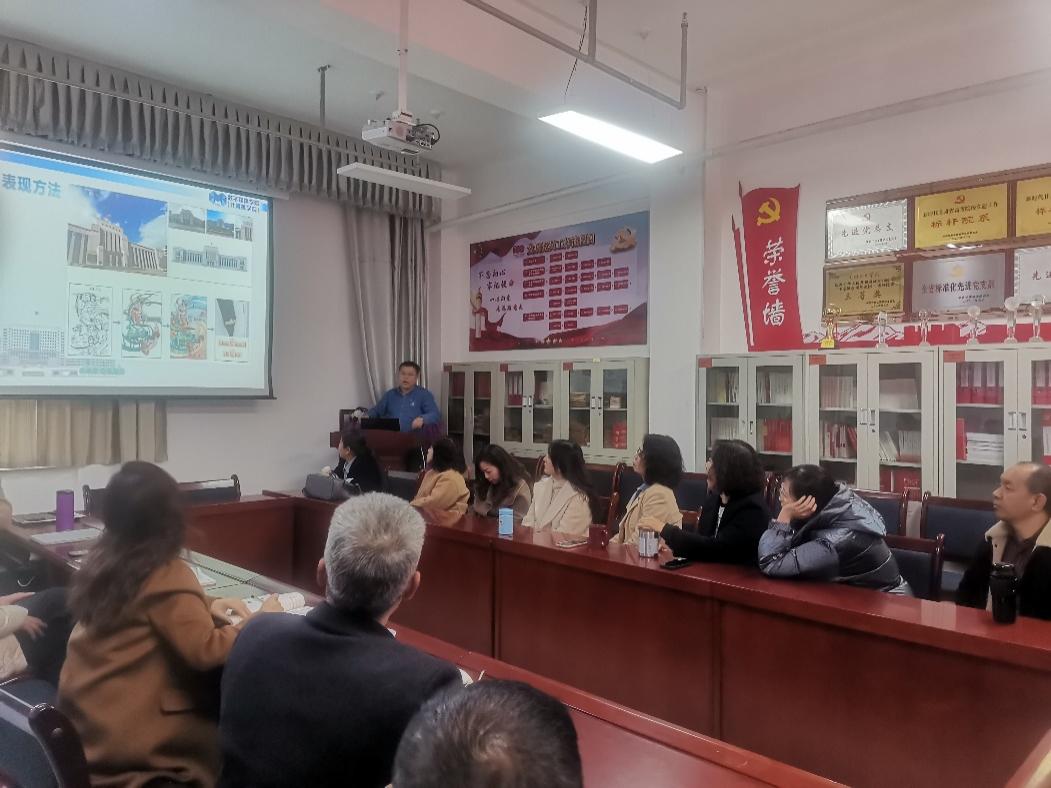 会议中,数字媒体艺术专业教研室主任王士勇老师作为主讲。他以其在动画角色设计课程中的实际案例为基础,系统阐述了课程思政在专业课程中的融合路径。王老师的演讲重点展示了课程目标、课程设计方案,以及如何将地方文化旅游资源与课程思政有效结合的具体做法,为与会教师提供了宝贵的教学参考。