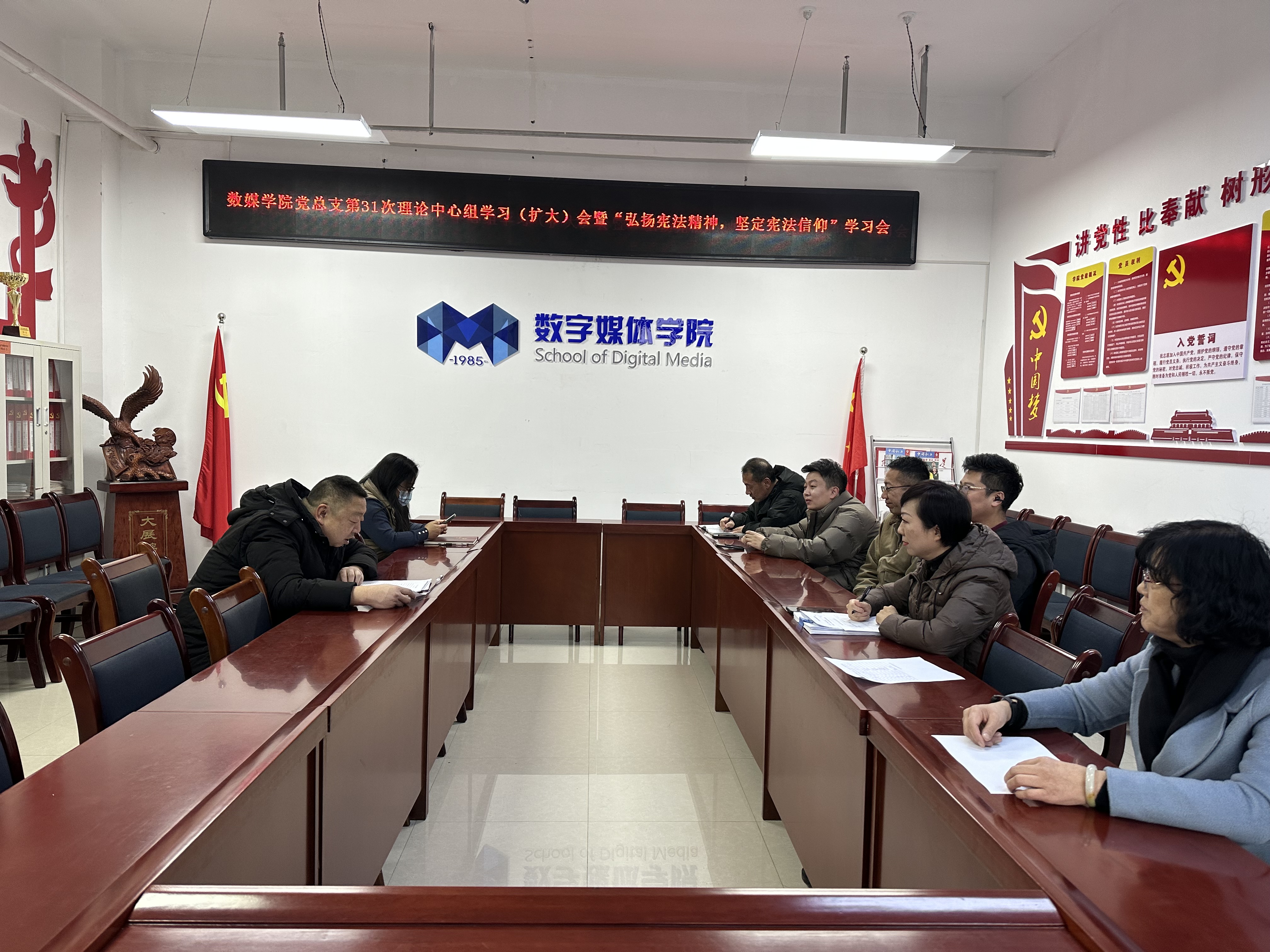 12月5日上午,公司党总支在南校区1-815会议室召开2023年第31次理论中心组学习(扩大)会暨“弘扬宪法精神,坚定宪法信仰”学习会。会议由党总支副书记、副经理张毅主持,公司中心组成员及各部门负责人与会。