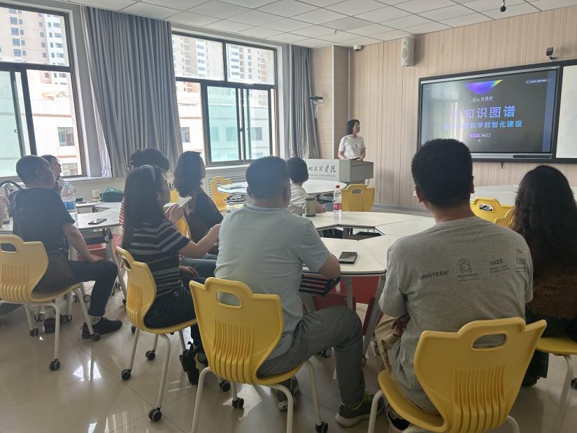 培训会上,平台负责人向教师们介绍了知识图谱的内容,专业知识图谱的构建方式,知识图谱全国建设情况,并以具体的案例,介绍知识图谱如何让不同学科专业进行交叉融合。其中重点讲述了人工智能技术在课堂教学中的应用,在现有教学规律下,利用AI做创新,打造AI课堂。最后,平台负责人对教师们提出的问题进行解答。