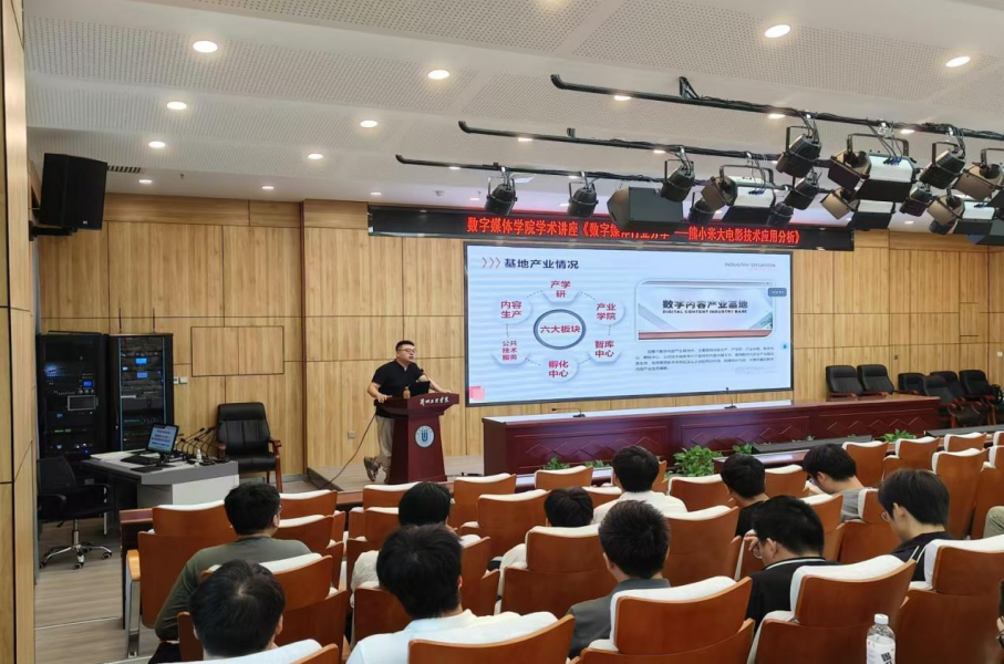 9月10日下午,2026世界杯官网邀请西安爱克斯未来影视动画公司导演刘洧,在文昌楼303学术报告厅做题为《数字媒体行业分享——熊小米大电影技术应用分享》的讲座,21级数字媒体艺术和数字媒体技术专业的员工参会,讲座由公司校企合作办主任蔺国梁主持。