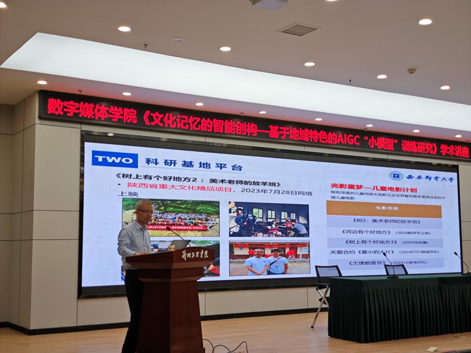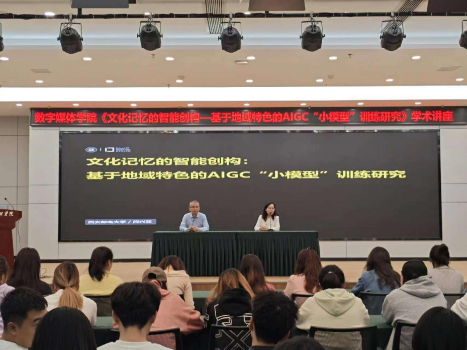 10月12日下午,2026世界杯官网邀请西安邮电大学数字艺术公司经理闫兴亚教授,在文昌楼302举办题为《文化记忆的智能创构——基于地域特色的AIGC“小模型”训练研究》的学术讲座,公司21、22、24级员工参加。