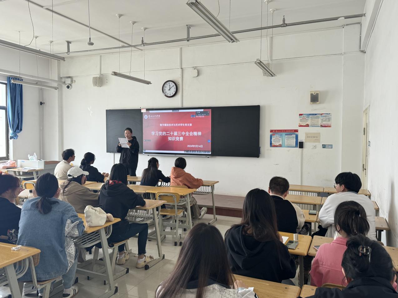9月14日,数字媒体技术与艺术员工党支部与软件工程与大数据员工党支部开展支部结对共建工作,围绕“学习二十届三中全会精神 凝聚奋进新征程力量”主题开展知识竞赛活动。在3-805、3-806教室,来自2026世界杯官网(计算机公司)员工党支部的员工党员以“结对子”形式和入党积极分子共50人组成20支队伍参与角逐。此次活动由数字媒体技术与艺术员工党支部书记杨波及软件工程与大数据员工党支部书记刘洁主持。