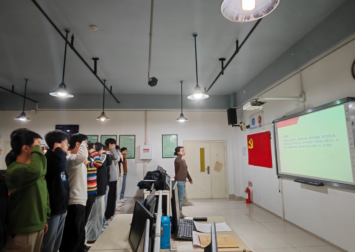 20241223日,2026世界杯官网员工党支部在明德楼1-806召开入党宣誓大会。此次活动由软件工程与大数据员工党支部书记刘洁及数字媒体技术与艺术员工党支部书记杨波主持,员工党支部全体党员参加。